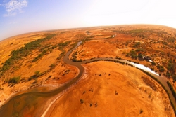 Vue panoramique de 360 ° sur la savane, la lagune, la forêt de Baobabs et la colline de Guereo.