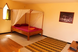 Composé de 1 pièce. Lit double moustiquaire et ventilateur, un couloir avec une salle de douche et toilette.