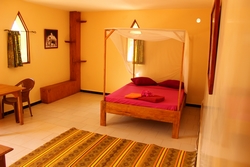 Composé de 1 pièce. Lit double avec moustiquaire et ventilateur, un coin salon, une salle de douche et toilette.